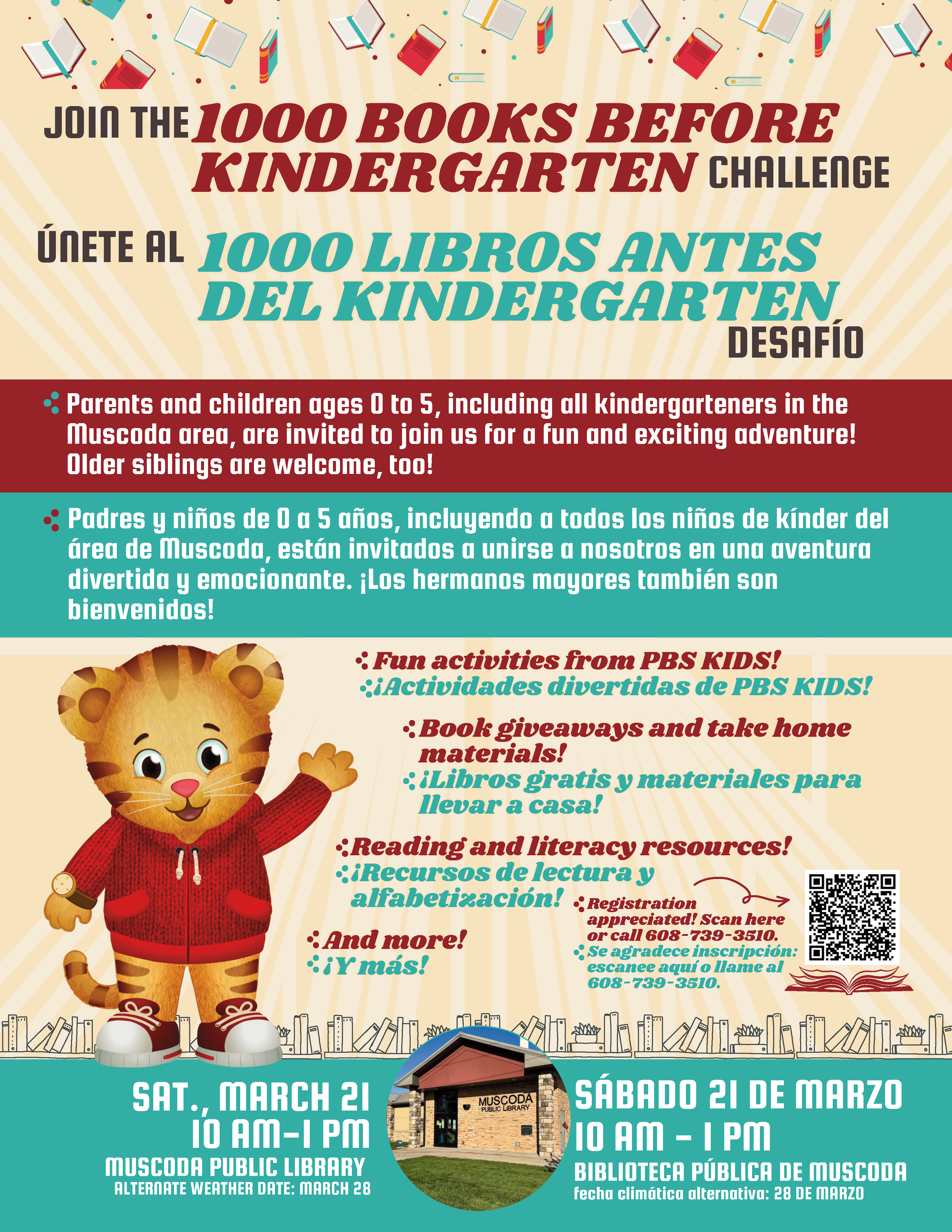 The Muscoda Public Library in collaboration with Riverdale Schools and CESA3 is hosting a 1000 Books Before Kindergarten Launch Event on Saturday March 21 at the Library. All families with kids ages 0-5 are welcome to participate in the event and follow-on program.